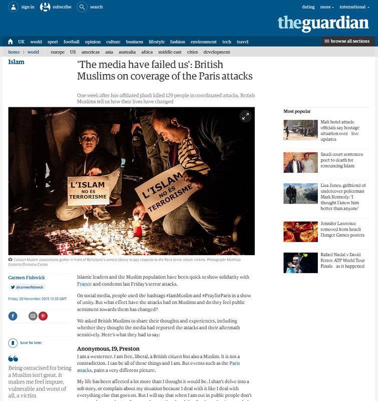His photographs have been published internationally in media including The Guardian, National Geographic, Le Monde, EL País, The Wall Street Journal, and other